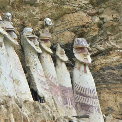 Heute besuchen wir die Sarkophage von Karajía. Diese Lehmsärge der Chachapoyas-Kultur sind über 2 m hoch, mit flachen, breiten Gesichtern und geschmückt mit geometrischen Figuren. Sie sind strategisch mitten in einem kalkartigen Felsen aufgestellt. Anschließend fahren wir nach Chachapoyas zu unserem Hotel.